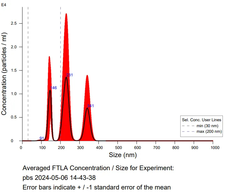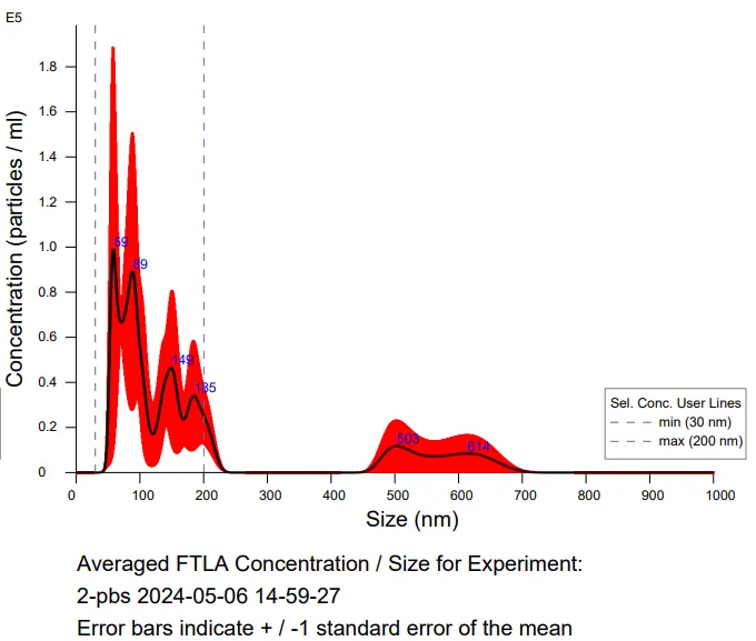 微粒数与粒径(mL)分布如下图: