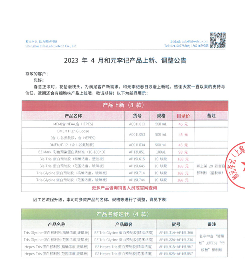2023年4月和元李记产品上新、调整公告