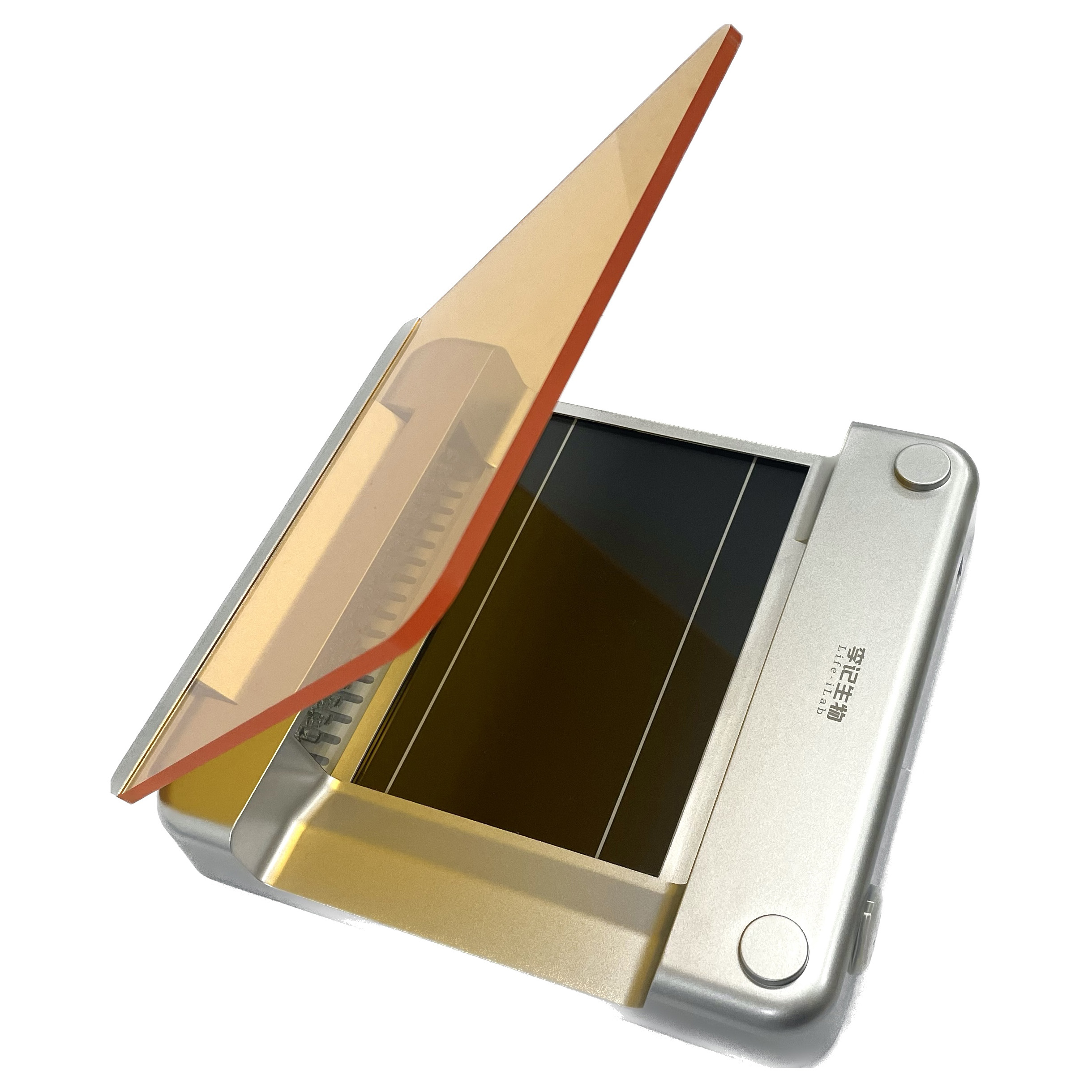蓝光切胶仪可用于清晰地观察凝胶中的核酸、蛋白,方便拍照或切胶。仪器采用 470 nm 蓝光激发荧光染料,更加安全,产品轻便小巧,占用空间小,便于携带转移,可代替紫外透射仪使用。