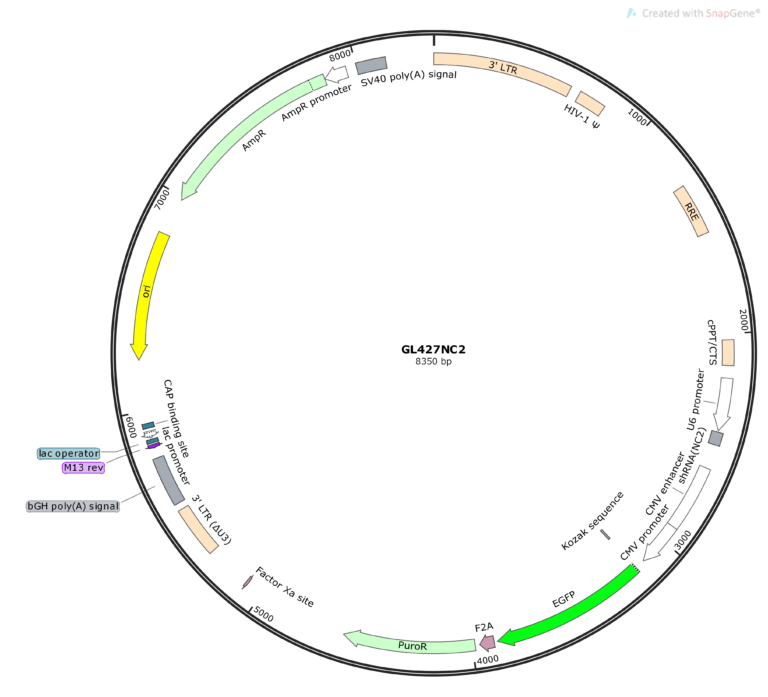 克隆流水号: | GL427NC2 | 序列名称: | ShRNA(NC) | |