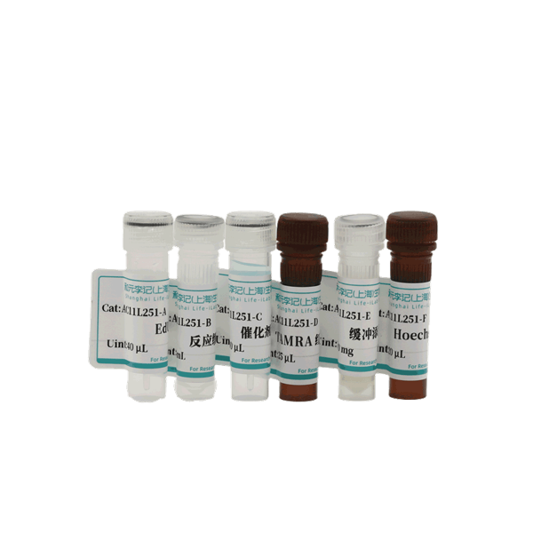 细胞增殖是评价细胞活性、代谢、生理和病理状况的重要指标。EdU (5-Ethynyl-2`- deoxyuridine)是一种胸腺嘧啶核苷类似物,其连有的炔烃基团在天然化合物中很少见,能够在细胞增殖时期代替胸腺嘧啶(T)掺入正在复制的DNA分子中,通过基于EdU与荧光染料的特异性共轭反应,把荧光基团标记到新合成的含有EdU的DNA上面,这样可以进行高效快速的检测出DNA复制活性,此技术广泛应用于细胞增殖、细胞分化、生长与发育、DNA损伤修复等方面的研究。