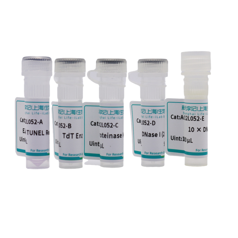 本试剂盒应用范围广,可用于检测冷冻或石蜡切片中的细胞凋亡情况,也可检测培养的贴壁细胞或悬浮细胞的凋亡情况。可选择性的检测凋亡细胞,而非坏死细胞或因辐照和药物治疗而造成的 DNA 链断裂的细胞。本试剂盒检测细胞凋亡,耗时短,只需一步染色反应,洗涤后即可检测。