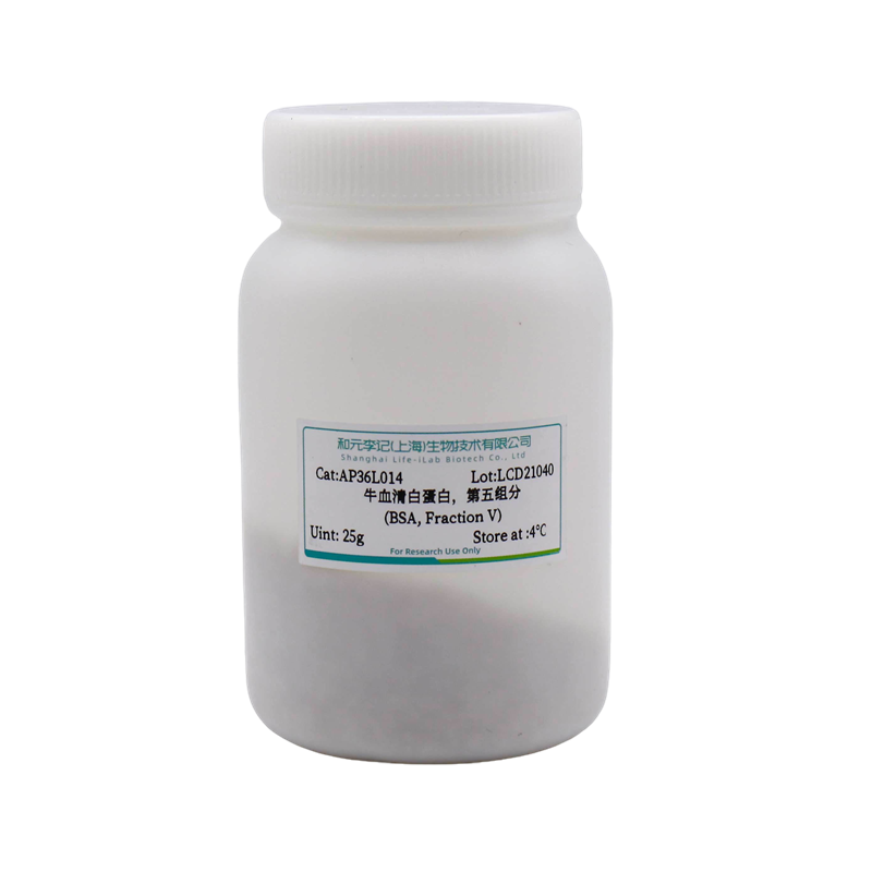 牛血清白蛋白,第五组分 (BSA, Fraction V),也称Bovine albumin,或Cohn Fraction V,简称BSA。BSA除了有着极其广泛的实验室应用外,还常在免疫实验中用作封闭剂,包括ELISA、WB(Western Blot)。作为载体蛋白,将其交联于半抗原和其他弱抗原可以使它们在抗体生产中具有更强的免疫原性。在限制性内切酶消化反应中,BSA常常被用作一些酶的反应稳定剂,并且能防止它粘附到管壁和枪头上。BSA也常用于生物制药的生产过程或者作为营养物用于细胞和微生物培养。除此之外,还作为蛋白定量检测的标准品使用。我们提供的BSA产品,使用优质牛血浆,利用改进的热休克法(Heat Shock)法,灭活蛋白酶制备而成,并通过非溶剂(non-solvent)处理方式去除脂类和其他血浆蛋白。